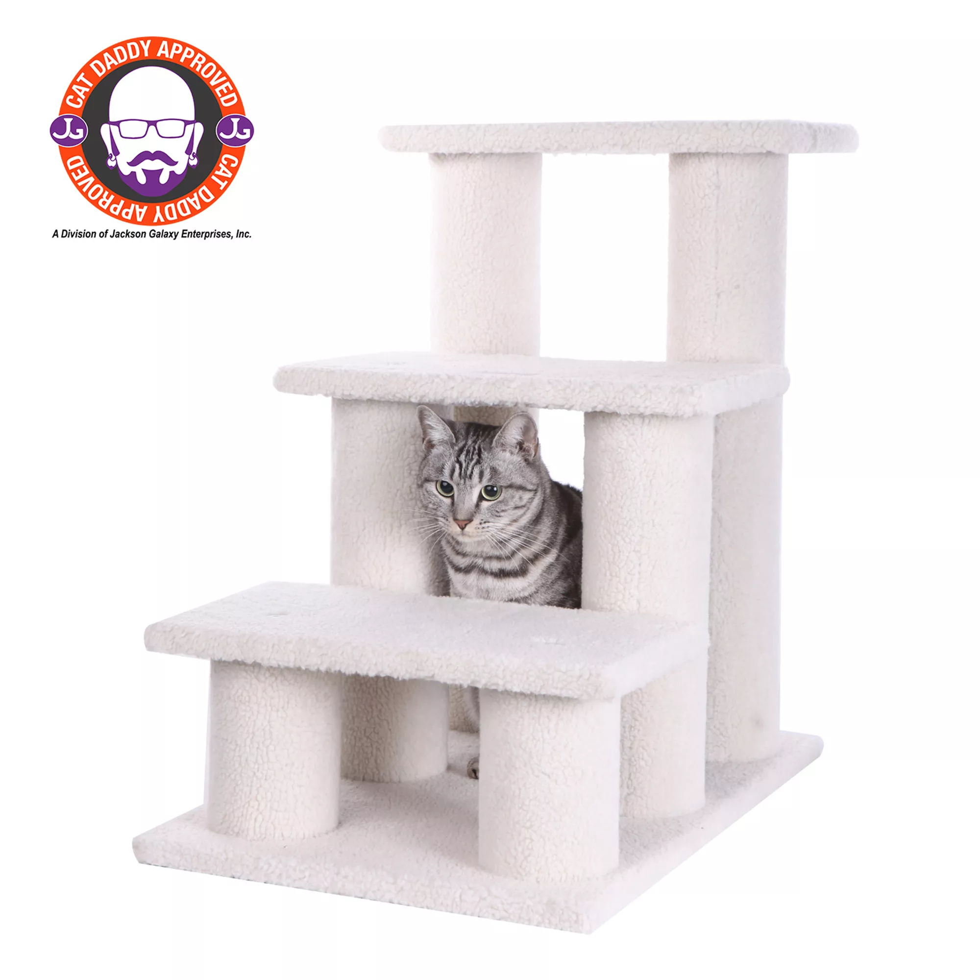 Armarkat 4 Steps Real Wood Pet Stairs Indoor Cat Stairway Step, Ivory