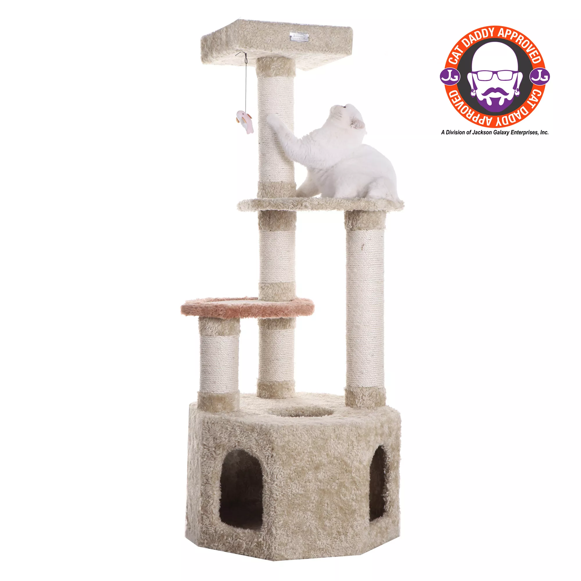 Armarkat 65-in Faux Fur Hammock, Tent House & Real Wood Cat Furniture Condo, Beige