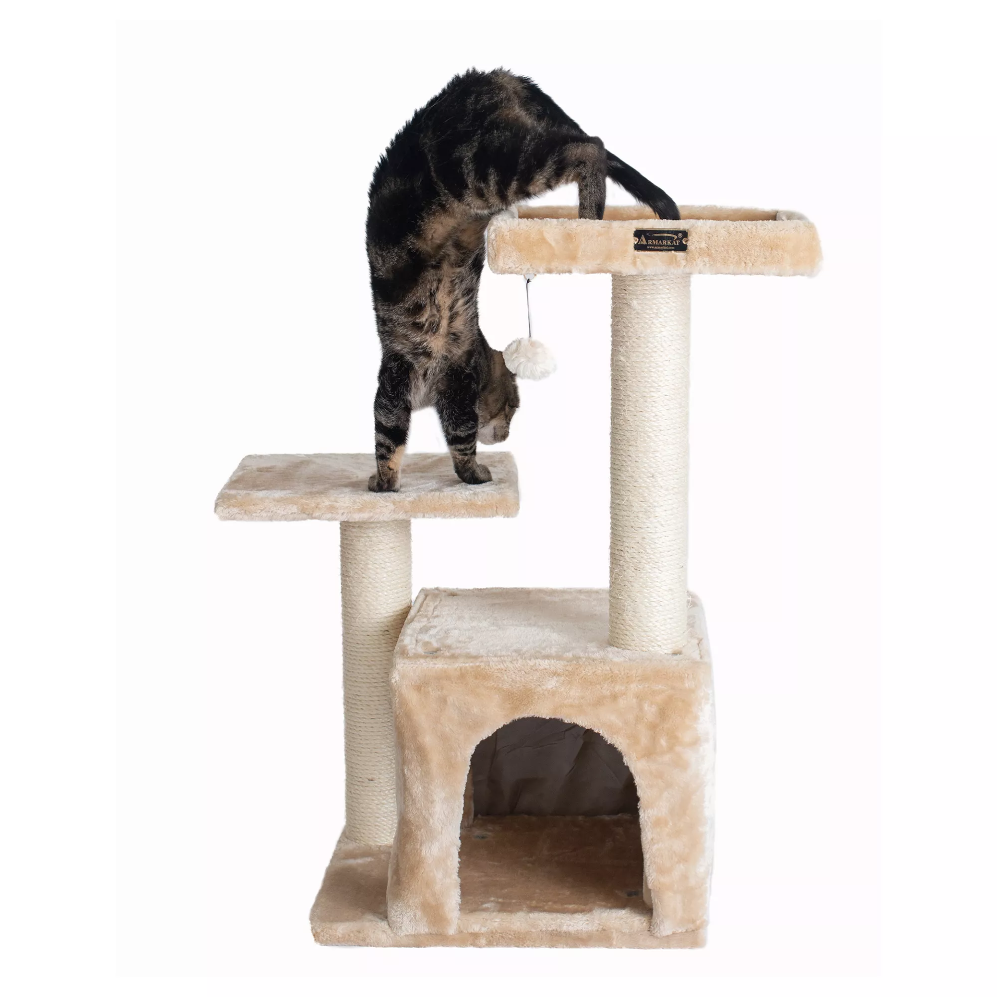 Armarkat 32-in Faux Fur Real Wood Cat Tree & Condo Kitty Pet Play House, Beige