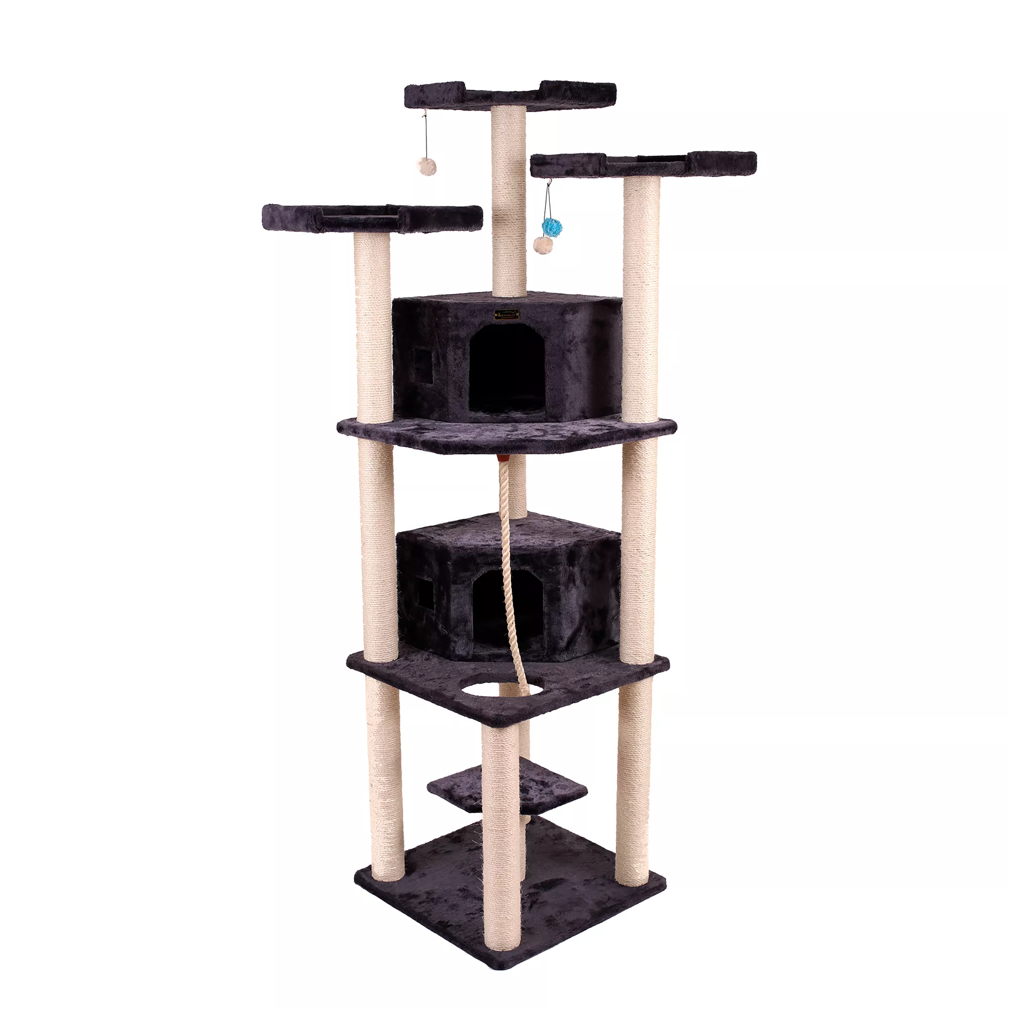 Armarkat 80-in Real Wood Cat Tower with Condos for Multiple Cats, Dark Gray