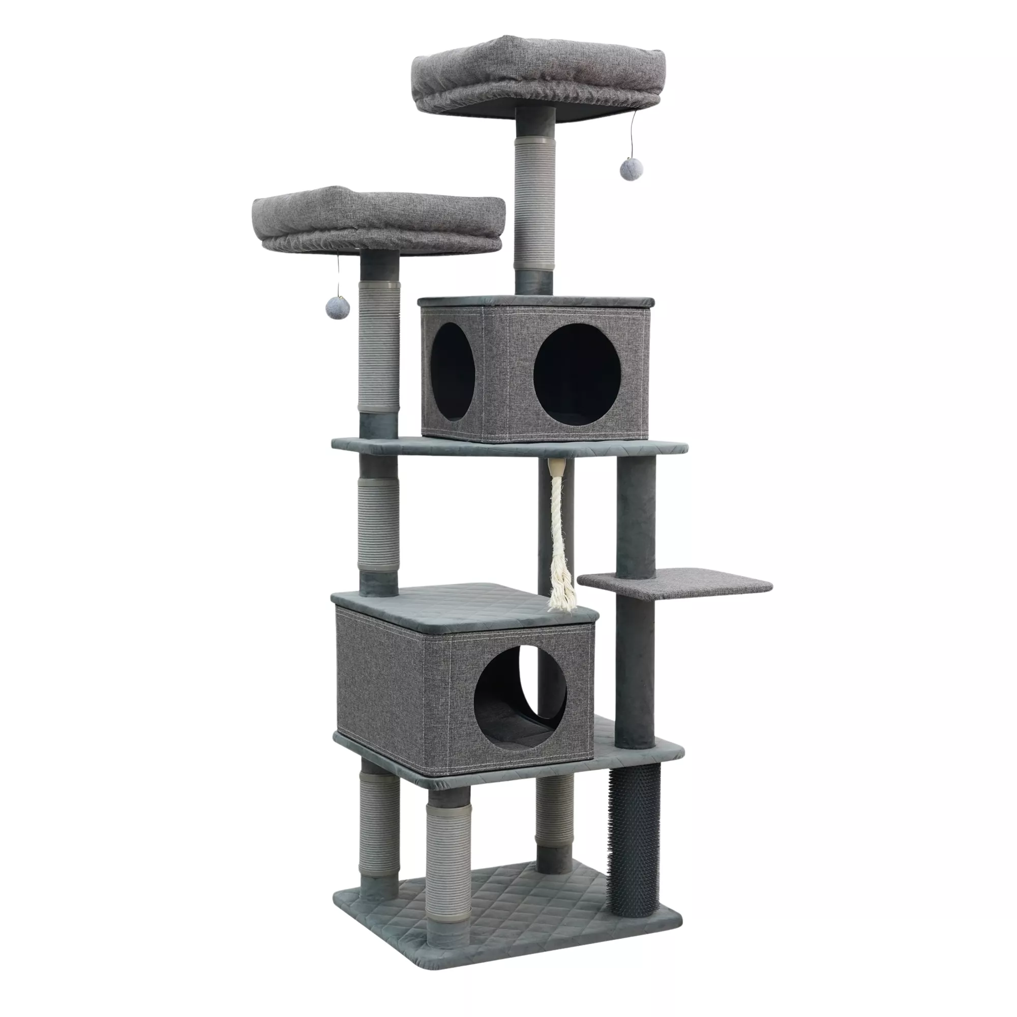 Catry 63-in Bradbury 7-Level Multi-Activity Cat Tree, Gray & Black
