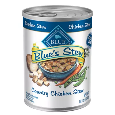 BLUE's Stew Grain-Free Wet Dog Food, Country Chicken Stew is made with natural chicken that will keep your pet coming back for more. Not only is this canned dog food delicious in flavor, but it is also enhanced with vitamins and minerals for adult dogs who prefer a meaty taste. This natural wet dog food is crafted with the finest ingredients that don't contain chicken (or poultry) by-product meals, corn, wheat (a common thickening agent used by other brands), soy, artificial flavors, or preservatives. Plus, it is packed with protein, so you can serve your best friend with the perfect wet dog food that you'll love feeding as much as they'll love eating.