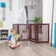 Walk-through door with two-way swingOne-handed latch with spring-loaded bolt holds door securely in place360 degree hinges allow for multiple configurationsSpans wide openingsUse as a gate or create a self-contained penFolds for easy storageRubber pads protect floors100% wooden constructionExtensions, support feet and wall mount kits available as accessories