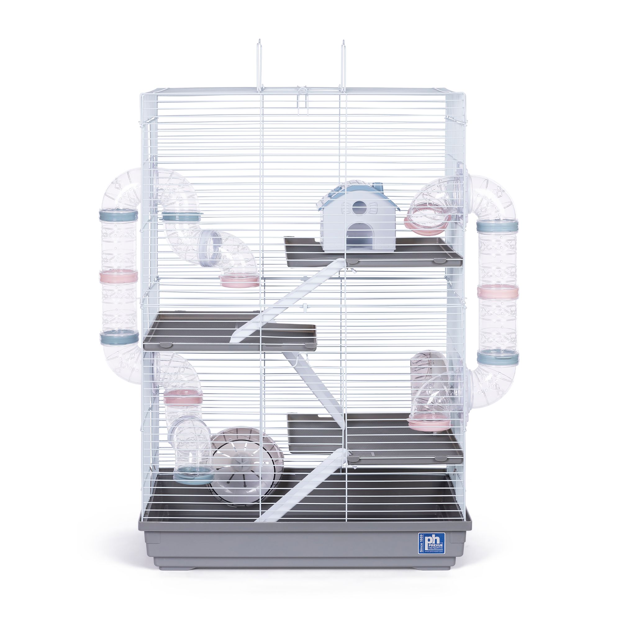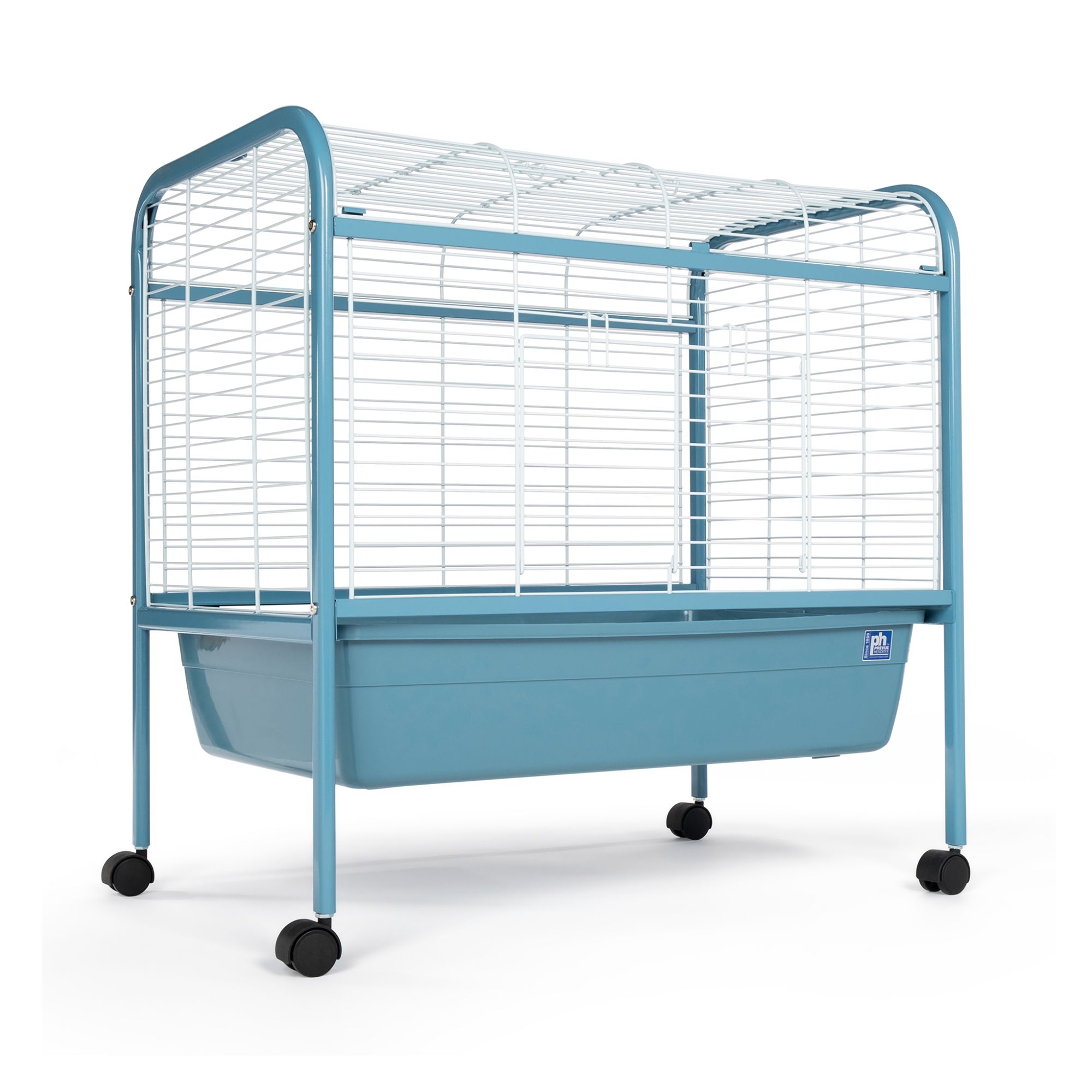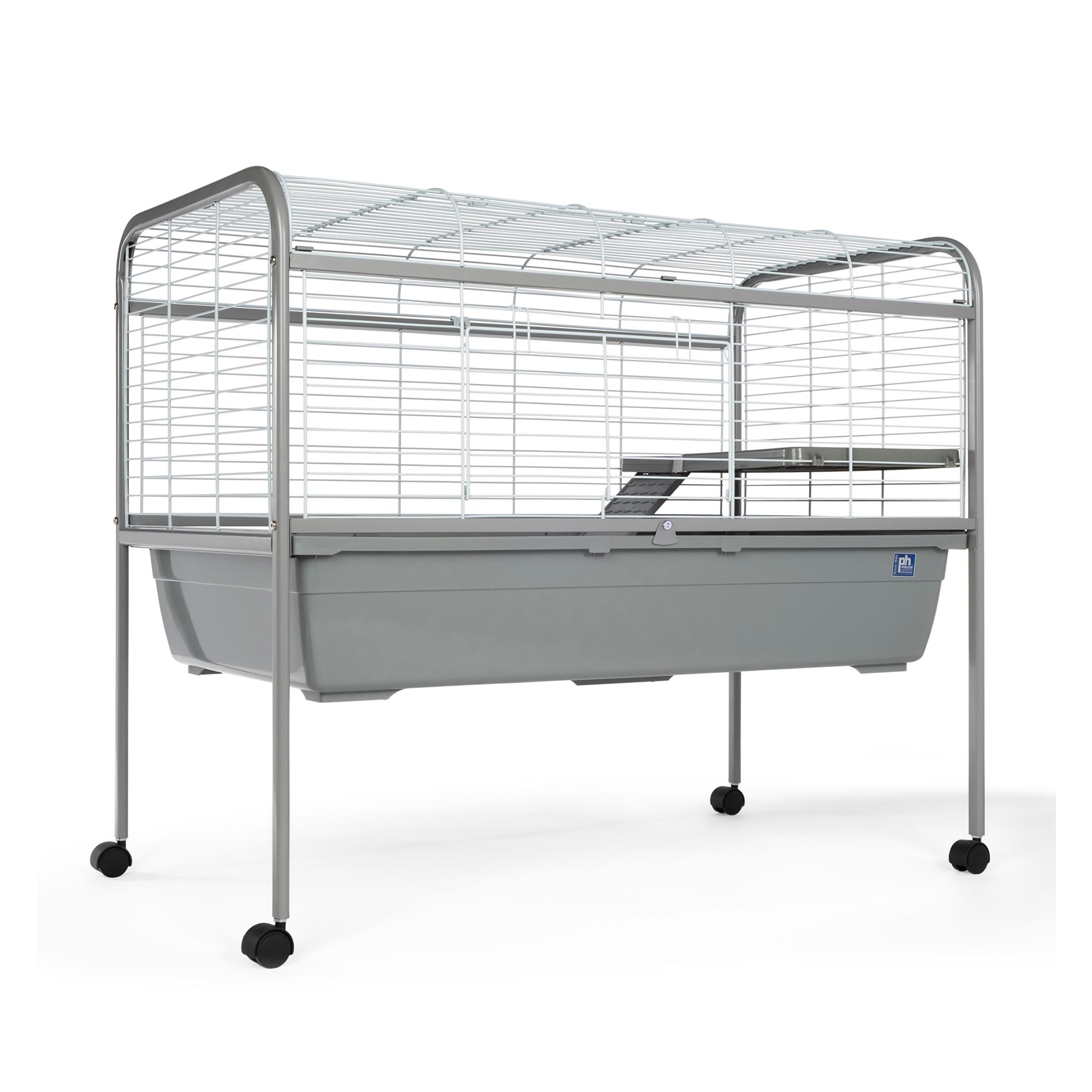 Includes: removable grille, pull-out debris tray, integrated storage shelf, easy rolling casters, plastic ramp, plastic platform, plush hammock