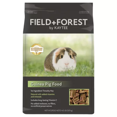Field+Forest by Kaytee is a premium guinea pig food made with wholesome ingredients your pet can smell and taste. Each ingredient is carefully curated from nature's fields and forests to support your guinea pig's healthy diet. The all-in-one pellet works to ensure naturally good nutrition in every bite with unique shapes and ridges that support dental health by encouraging your pet's natural chewing instinct. Field+Forest is simply good food. It contains no added molasses, fillers, or artificial preservatives. Love What's Inside.