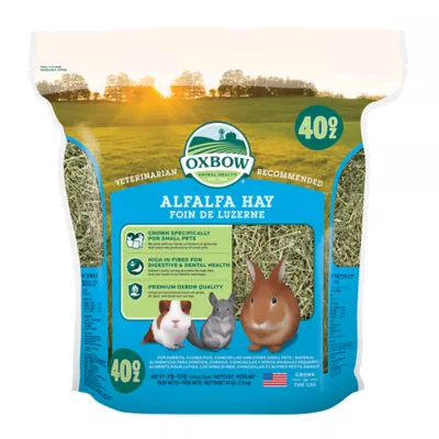 Sweet, soft Oxbow Alfalfa Hay is a legume hay that is high in fiber, protein, and digestible energy. Alfalfa hay is the ideal hay for growing, pregnant, or nursing pets. Or, offer to your rabbit, chinchilla, guinea pig or other small pet as a treat anytime.