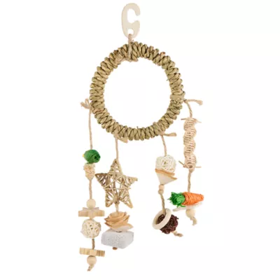 This Full Cheeks® Mixed Mobile Chew is made with love for guinea pigs, rabbits, and most small animals. This mobile encourages positive chewing behaviors while providing much-needed mental stimulation. We believe caring for your furry little one should be as easy as loving them, and now it can be. Now all they need to do is what they do best: give lots of love. Exclusively at PetSmart.